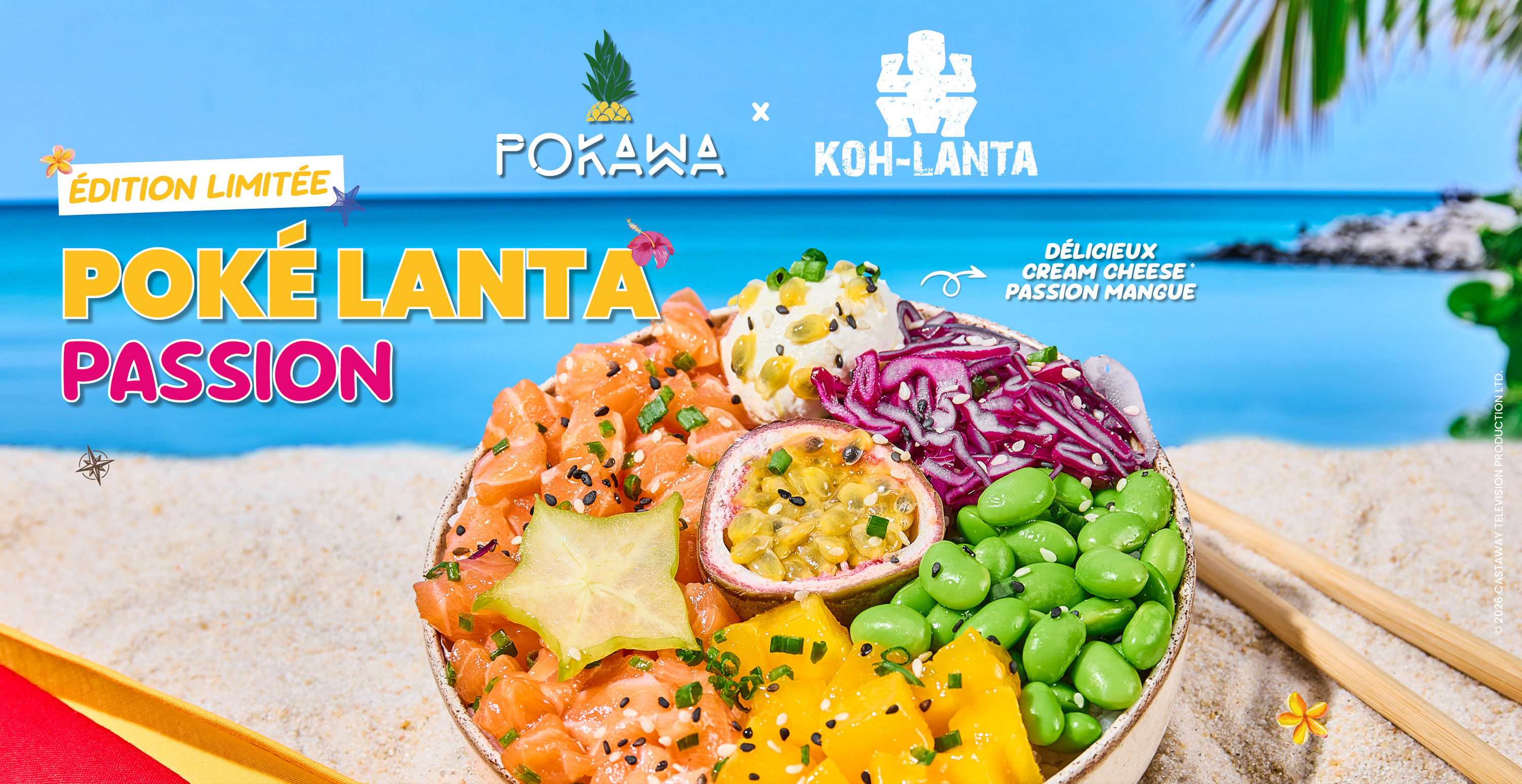 Cette association s’accompagne d’une opération en point de vente avec la création d’une recette inédite : un Poké Lanta Passion axé sur les aliments et fruits exotiques dans l'esprit de Koh-Lanta. A cette occasion, la marque dévoile un spot créatif de 20 secondes produit par TF1 Factory, porté par la voix emblématique de Denis Brogniart.