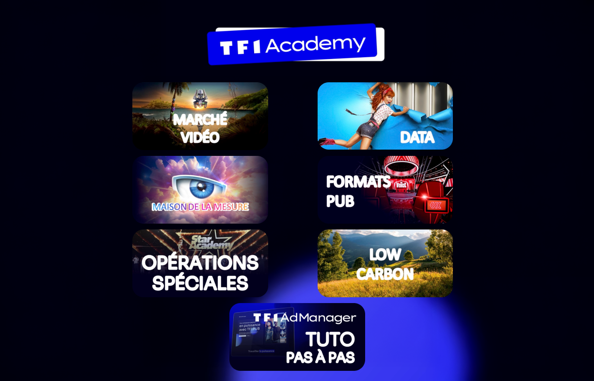 Rejoignez dès à présent la TF1 Academy, notre parcours de formation certifiant et gamifié, enrichi de deux nouveaux modules exclusifs pour maîtriser nos outils et solutions.